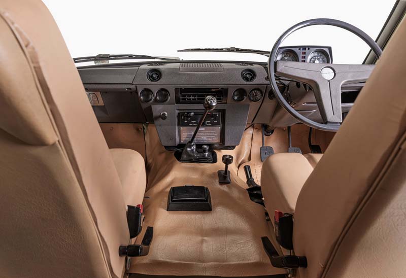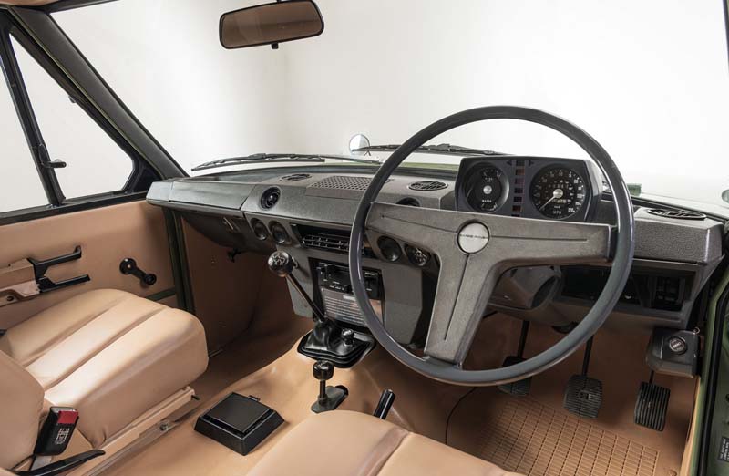 Si tratta di una rarissima Range Rover Classic, una delle primissime prodotte, come certificato dal numero di telaio, che termina con il numero 572 e con la lettera A (Suffix A), che ne identifica la serie. Una Range Rover dalle linee decise ed eleganti, in allestimento a due porte, con frontale deciso, mascherina a griglie verticali e fari rotondi, cofano squadrato, portellone posteriore sdoppiato a ribaltina, in configurazione con guida a destra (originale inglese), trazione 4 Wheels Drive, cambio manuale e cinque posti.