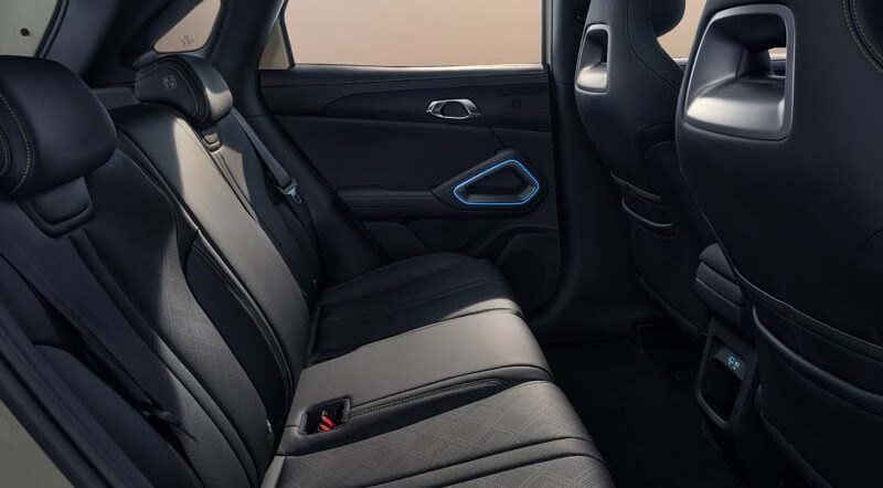 Stile minimalista anche negli interni, con una plancia distesa dove spiccano il cluster rettangolare della strumentazione e il grande display della multimedialità.Tra i particolari apprezzabili il grande tetto panoramico in vetro e la funzionalità della consolle centrale con portabicchieri, bracciolo integrato, selettore delle modalità di guida e comandi essenziali a portata di mano.