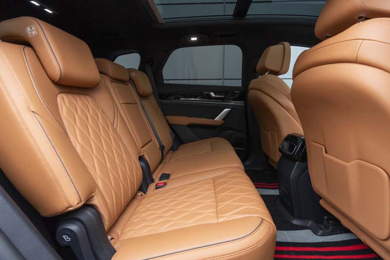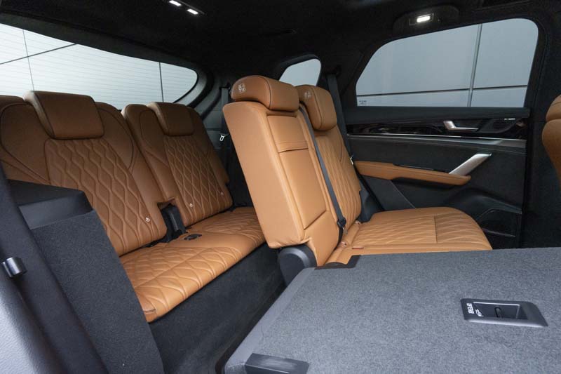 Il design, molto asiatico, propone un look corposo con alcune caratterizzazioni specifiche del brand, come il frontale pulito senza griglie, la fanaleria e Led multielementi, la barra cromata a tutta larghezza con logo integrato, il bumper totale e l’irrinunciabile skid plate più estetico che funzionale. Di buon slancio la fiancata con passaruote segnati che incorniciano i cerchi in lega sportivi da 21”. E per il posteriore, a incombere su tutto c’è l’ampio portellone, tagliato a mezza altezza dalla slanciata fascia della fanaleria di ottima visibilità