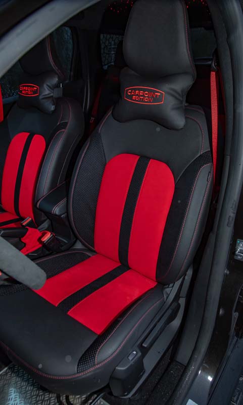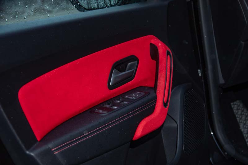 Sostanziale l’intervento per gli interni, dove CP Performance ha puntato su materiali di qualità e su un curato abbinamento di colori. Come per i sedili in pelle/Alcantara, caratterizzati dalla particolare struttura anatomica e sportiva, valorizzati dalle fasce rosse nelle sedute, dalle cuciture impunturate e dai loghi inseriti nei poggiatesta, con anche richiami in rosso per i rivestimenti delle portiere, per le cornici di alcuni particolari della plancia e per i rivestimenti del cambio e del freno a mano.