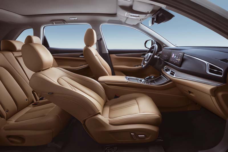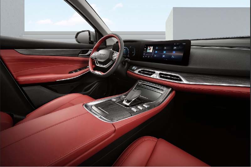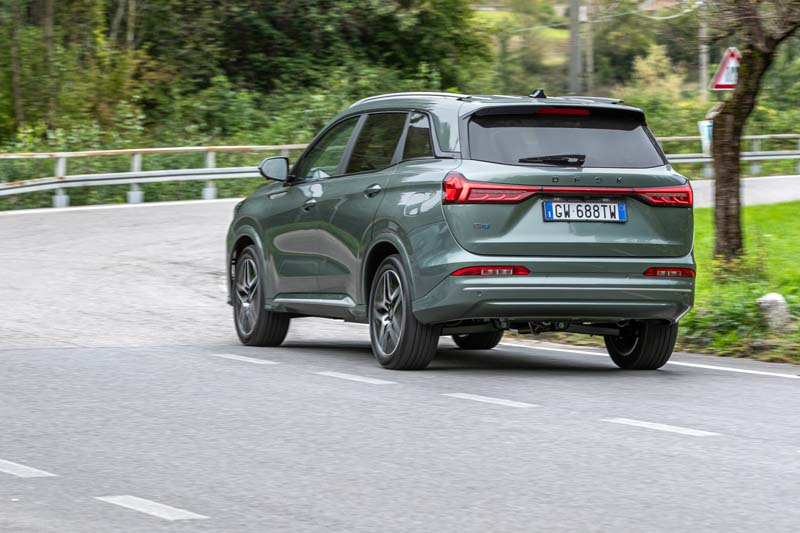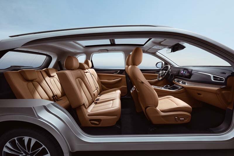 Le dimensioni (4760x1865x1710 mm) si esprimono con un design di buon dinamismo, caratterizzo da un frontale dall’ampia griglia a nido d’ape, dalla fanaleria trapezoidale, dalla fiancata alta e dalla coda importante con ampio portellone e fanaleria in evidenza supportata a Led. Nelle dotazioni spiccano gli interni in pelle, i cerchi da 19”, il tetto panoramico e il touch screen da 10,25”. Quattro i colori di carrozzeria disponibili: grigio, nero, oro, verde.