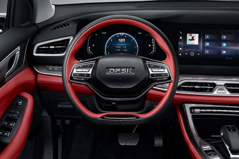 DFSK E5 Phev è il primo modello ibrido del brand, con un powertrain basato su un motore a benzina 4 cilindri, di 1.5 litri, con 110 cv di potenza, abbinato ad un propulsore elettrico, alimentato da una batteria da 17,52 kWh ricaricabile, per una potenza massima d’insieme di 180 cv e velocità di 165 km/h. E’ di circa 87 km la percorrenza in modalità totalmente elettrica, mentre in quella combinata supera i 1.000 km. Il cambio è automatico e-CVT.