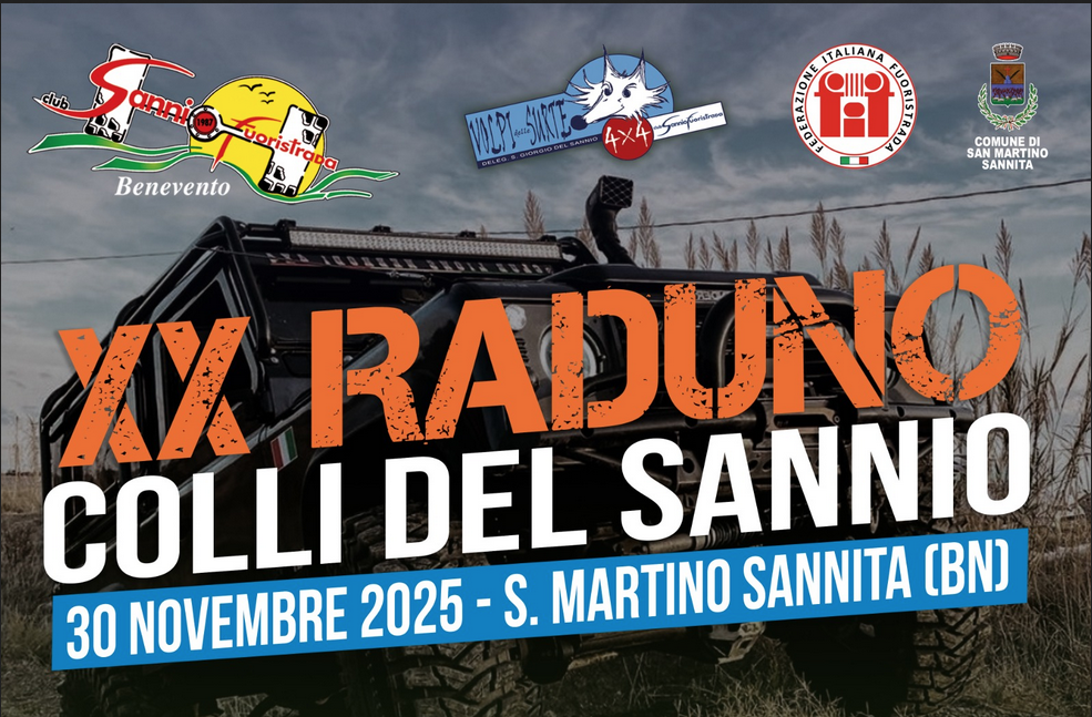 Promette di essere un evento spettacolare la il 20° Raduno Colli del Sannio , organizzato dal Club Sannio Fuoristrada. Si tratta di un evento classico, con interessanti aspetti tecnici e varianti impegnative facoltative, che sarà guidato da un road book cartaceo. Il percorso attraverserà i territori di San Martino Sannita e di San Nicola Manfredi, con un tracciato adatto a tutti i fuoristrada con ridotte, ma con adeguate dotazioni di base comprendenti gomme da fango, trip-master, verricello, strops, grilli, ecc.