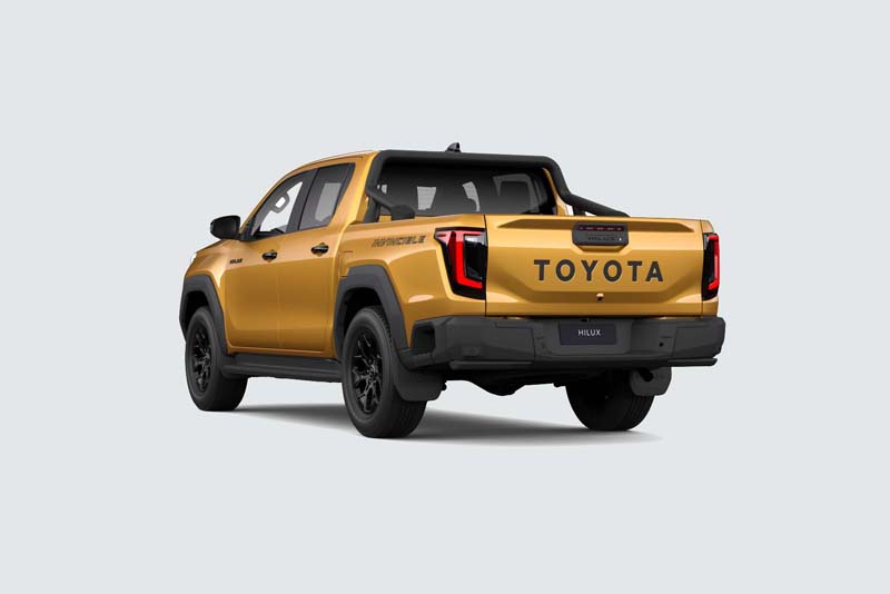 Un Hilux Mild Hybrid 48V dalla forte personalità, espressa da un stile rinnovato e modernamente interpretato, con un frontale ridisegnato, di proporzioni più moderne, con una firma luminosa, con fari Full Led collegati da un fascia centrale che integra il badge Toyota. A completare l’immagine corposa ci sono, secondo gli allestimenti, i cerchi in acciaio da 17” oppure in lega da 17” o 20” che vanno ad aggiungersi all’ampia rivisitazione dei particolari del corpo vettura: cofano, parafanghi, portellone, sovrafanali, pedane e altro.