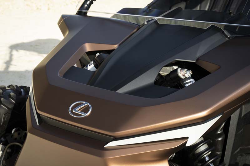 La carrozzeria è stata progettata per proteggere i passeggeri, incorporare l’iconica griglia distintiva Lexus e conservare abbastanza corsa per la sospensione anteriore. Inoltre, i parafanghi anteriori sono stati concepiti per offrire protezione contro eventuali sassi proiettati durante la guida o fango.