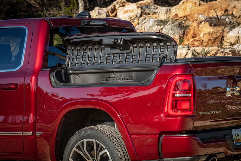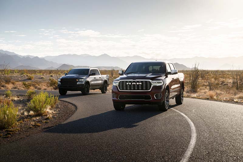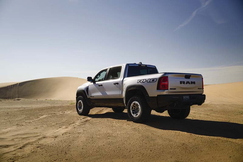 Il tutto abbinato ad una configurazione fuoristradistica realizzata per utilizzi in ogni situazione anche in condizioni ambientali difficili. Due gli allestimenti specifici previsti per il fuoristrada estremo: Ram 1500 Rebel e Ram 1500 RHO. Per entrambi configurazione ottimizzata con angoli di entrata, uscita e dosso migliorati, altezza da terra aumentata di uno o due pollici, pneumatici A/T rispettivamente da 33” e 35”e altro.