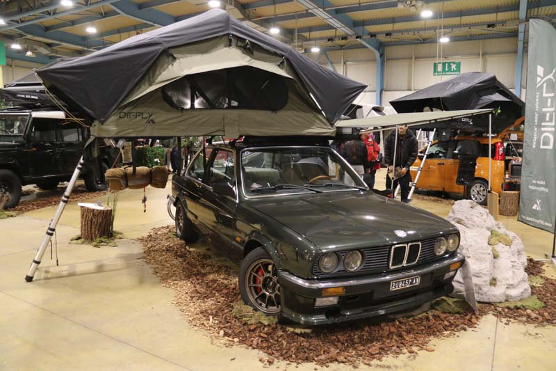Curiosa la realizzazione da Difly che, per presentare le proprie tende da tetto, ha realizzato un allestimento funzionale su una BMW un po’ datata ma sicuramente interessante.