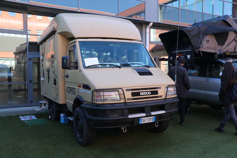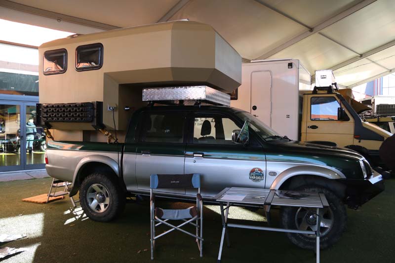 Nella rassegna, non potendo citare tutti, spiccavano esemplari interessanti come due camper 4×4 su base Iveco, una camperizzzione realizzata su un datato Iveco WM 90 ex ambulanza, la cellula in VTR dello specialista Van Dals, una serie di agili camperizzazioni dotate di tetto a soffietto rialzabile e la minicellula Alu Cab, in materiale misto VTR/tessuto, installata su un pick up.