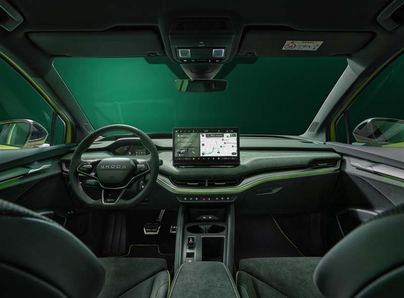 La nuova Skoda Elroq RS Matte Edition, proposta in listino a 54.750 euro, oltre alla verniciatura opaca di serie mette a disposizione un equipaggiamento full optional che, oltre ai cerchi da 21”, e alla pompa di calore, include anche del pacchetto Maxx nel quale sono in evidenza il clima automatico a 3 zone, i sedili anteriori elettici con funzioen massaggiante, il sistema di parcheggio automatizzato e molto altro.