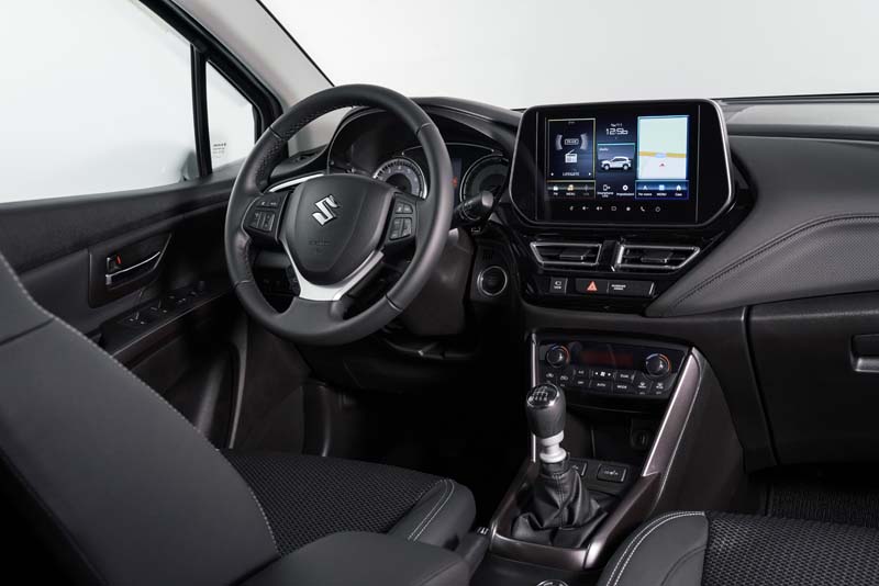 Nella Suzuki Hybrid S-Cross Yoru il gioco dei colori si esprime con i toni del cielo notturno interpretato dalla vernice Blu Capri metallizzata della carrozzeria, che si confronta con elementi a contrasto color argento come le calotte dei retrovisori e gli skid plate anteriore e posteriore che, oltre all’aspetto estetico, rappresentano anche un fattore importante per affrontare qualsiasi ostacolo in off road. Anche sulla S-Cross i montanti centrali esibiscono il badge Yoru.