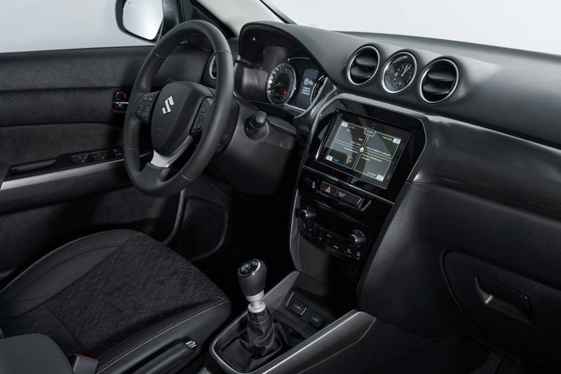 Infatti per la Suzuki Vitara Hybrid Yoru il look della parte inferiore della carrozzeria, con il suo intenso color blu notte, nel contrasto con l’argento lunare del tetto, realizza uno stile dinamico ed elegante ben caratterizzato che si completa con le finiture esterne in Black sul paraurti, sul listello superiore della griglia anteriore, oltre che sulle cornici delle luci diurne e sui fregi laterali del cofano. La personalizzazione si perfeziona con il badge Yoru e le scritte giapponesi Kanji, applicati sui montanti B.